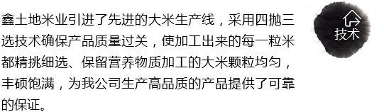 鐵等礦物質,無污染的環(huán)境,豐產的水稻資源,使鑫土地米業(yè)不斷發(fā)展壯大,成為綏化地區(qū)新崛起的一支精制大米生產的生力軍。